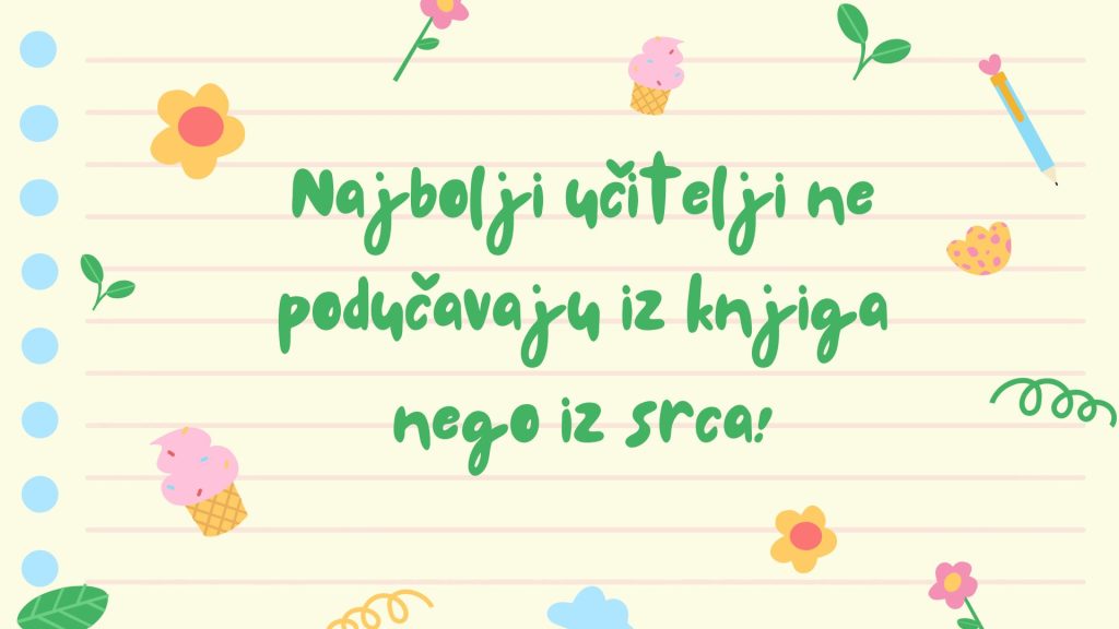 S poštovanjem i zahvalnošću, čestitam vam Dan učitelja uz želju da vam radni vijek, kao i doba umirovljenja, budu ispunjeni ponosom i lijepim uspomenama na rezultate koje ste ostavili u svakoj generaciji.